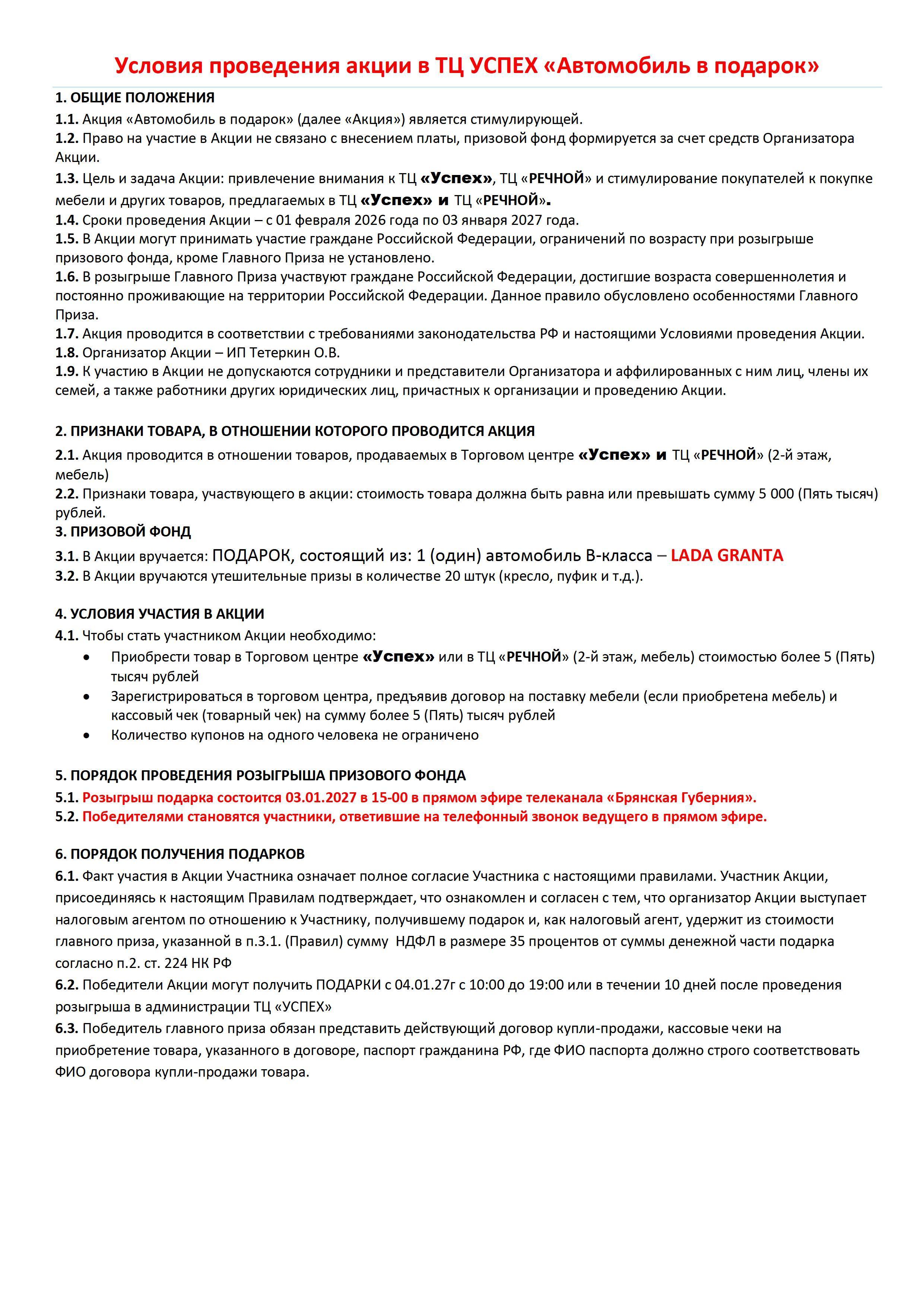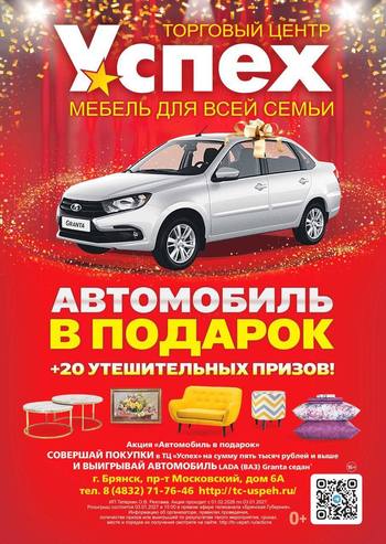 В ТЦ УСПЕХ расположенном по адресу, проспект Московский д.6А с 01.02.2026 стартовала акция "Автомобиль в подарок!"